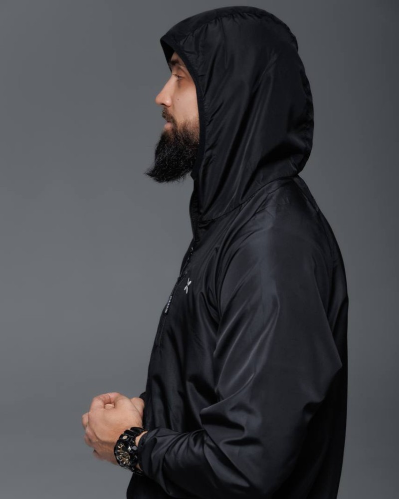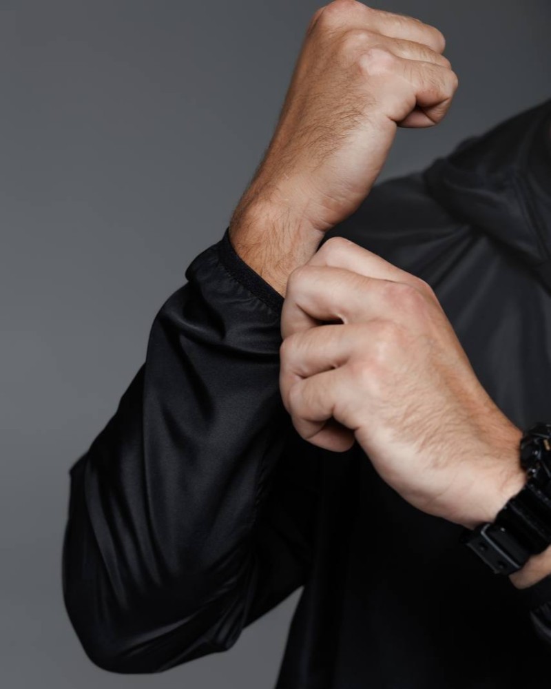 Długość rękawa mierzona jest od miejsca, w którym rękaw łączy się z kapturem (szwem przy szyi) do krawędzi rękawa.